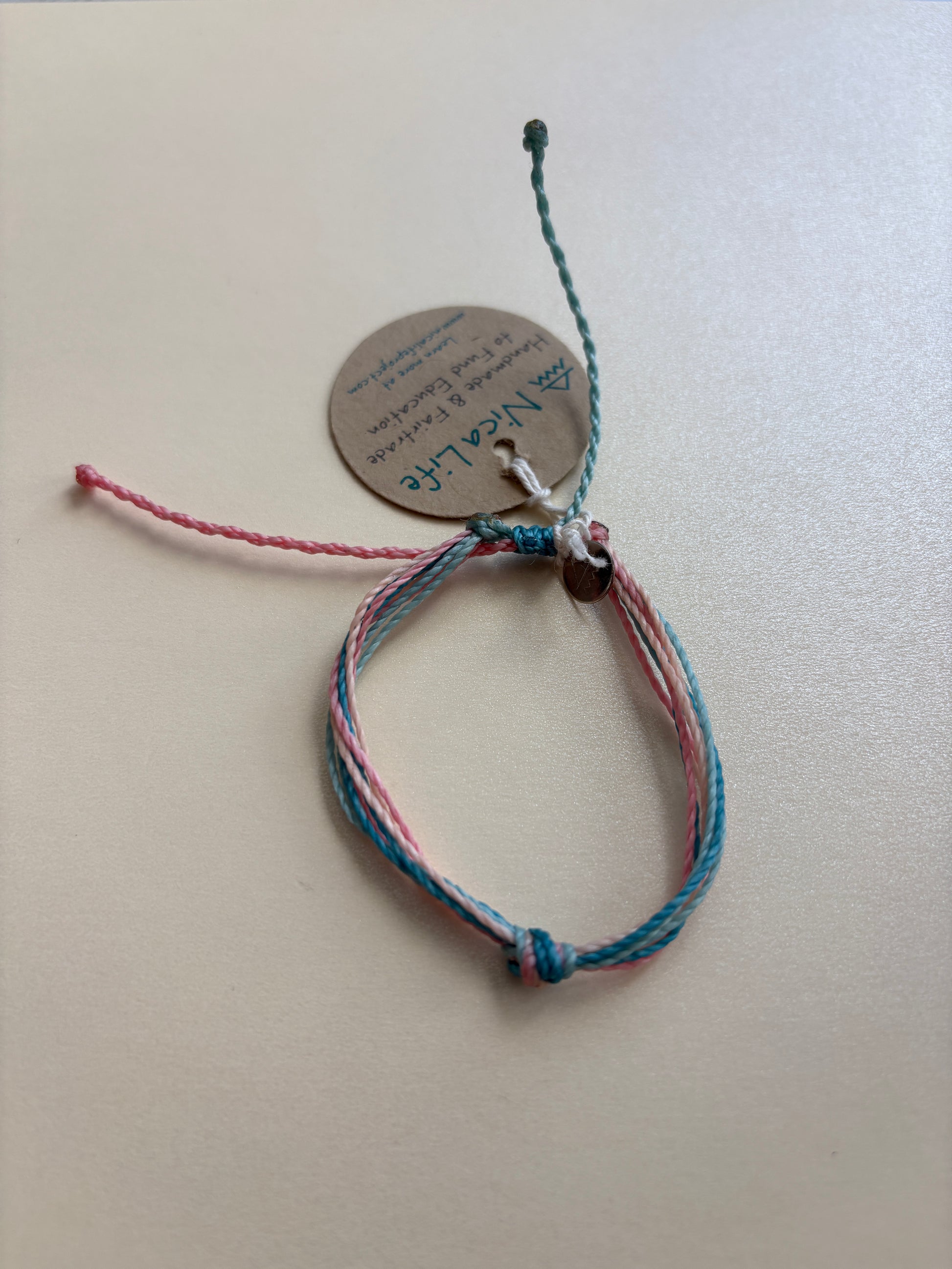 Embrace understated elegance with the Canny Felicidad Bracelet, a delicate accessory featuring a harmonious blend of soft baby blue and baby pink. This refined piece transitions seamlessly between hues, creating a gentle gradient that complements any complexion and wardrobe. Perfect for layering or wearing solo, its thread construction offers lightweight comfort for all-day wear. An ideal choice for those who appreciate subtle sophistication and timeless style.