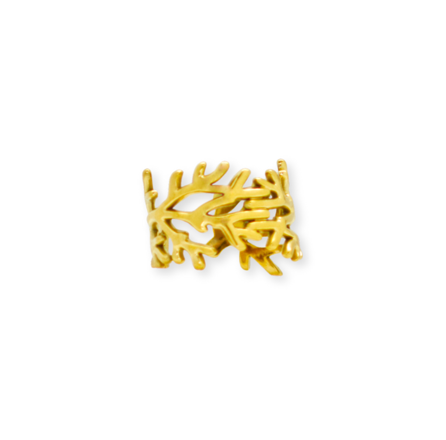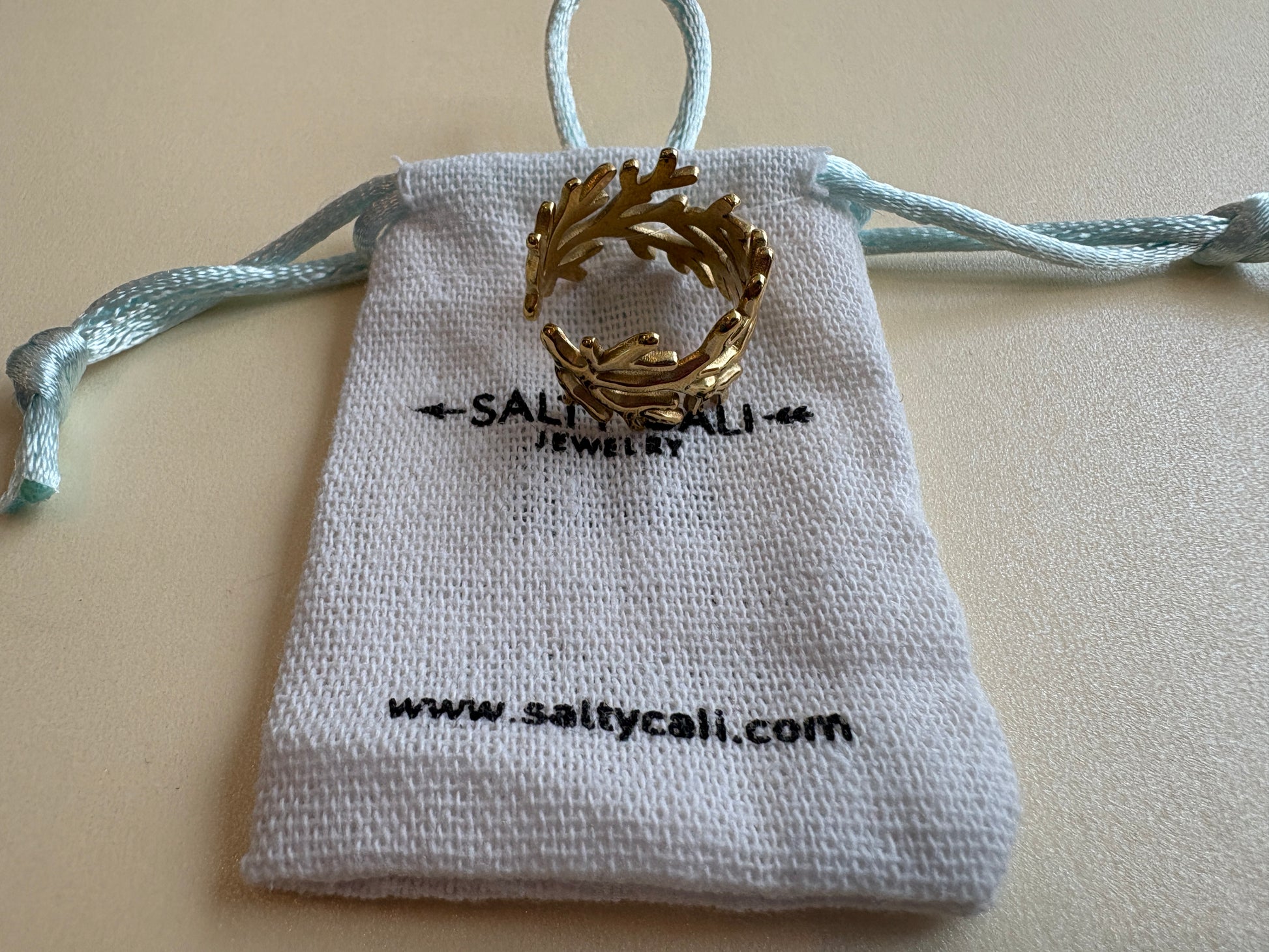 Inspired by the textures of ocean reefs, this bold gold ring captures the organic beauty of coral—without using any real coral. Its open design wraps comfortably around your finger, while the intricate detailing adds a touch of wild elegance. Made of gold-plated stainless steel, it’s water-resistant, tarnish-free, and built for everyday adventure. Key Features: Design: Coral-inspired sculptural design Material: High-quality gold plated stainless steel, ensuring durability in and out of the water. Comfort: Dainty and lightweight for everyday wear. Adjustable fit! Product Details: Gold-plated stainless steel (water + sweat-proof) Size: adjustable Your go-to ring for coastal vibes, all year long.