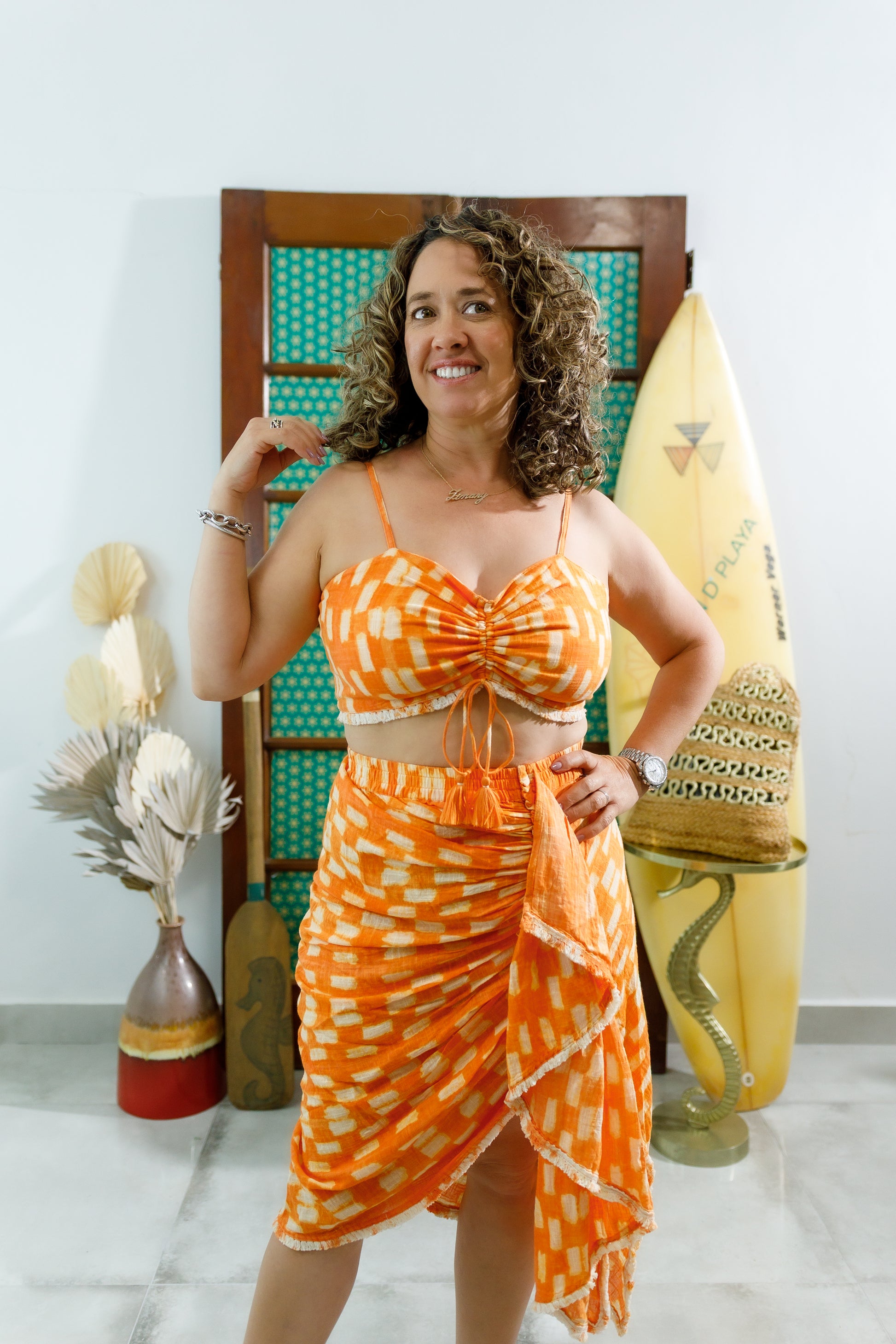 This vibrant coral skirt features a distinctive open side design that enhances breathability and adds a stylish edge to your outfit. Its bright orange hue is perfect for making a confident statement while maintaining versatility for various occasions. Crafted to offer both comfort and flair, this skirt effortlessly complements your wardrobe with a modern, expert touch.