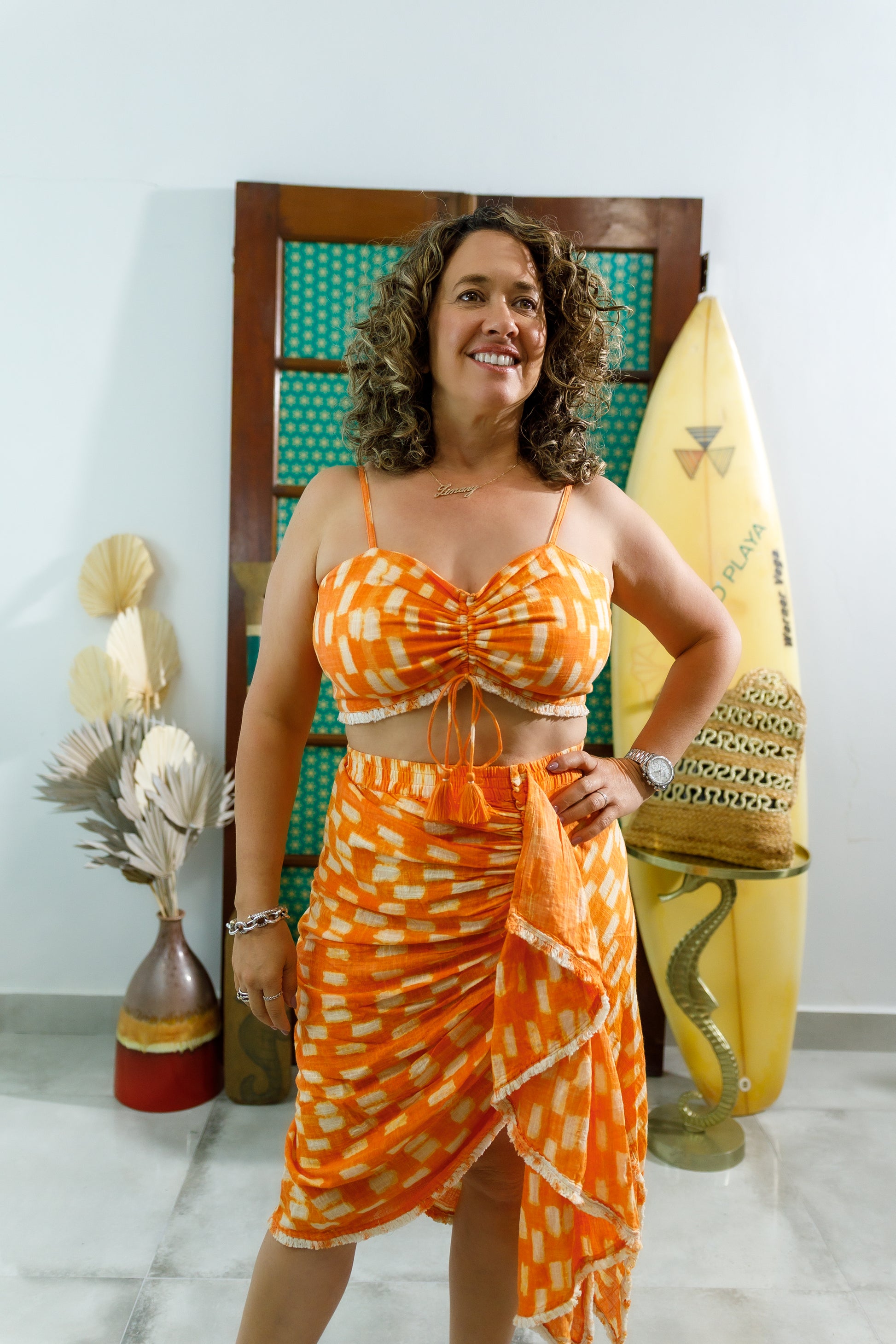 Coral's cropped top in vibrant orange offers a stylish, form-fitting design that enhances your silhouette with a modern edge. Crafted for versatility, it pairs effortlessly with high-waisted bottoms, making it ideal for both casual days and evening outings. The bright color ensures you stand out while embracing comfortable wear for warm weather or layering options. Perfect for those seeking a bold, confident look with expert-level fashion appeal.