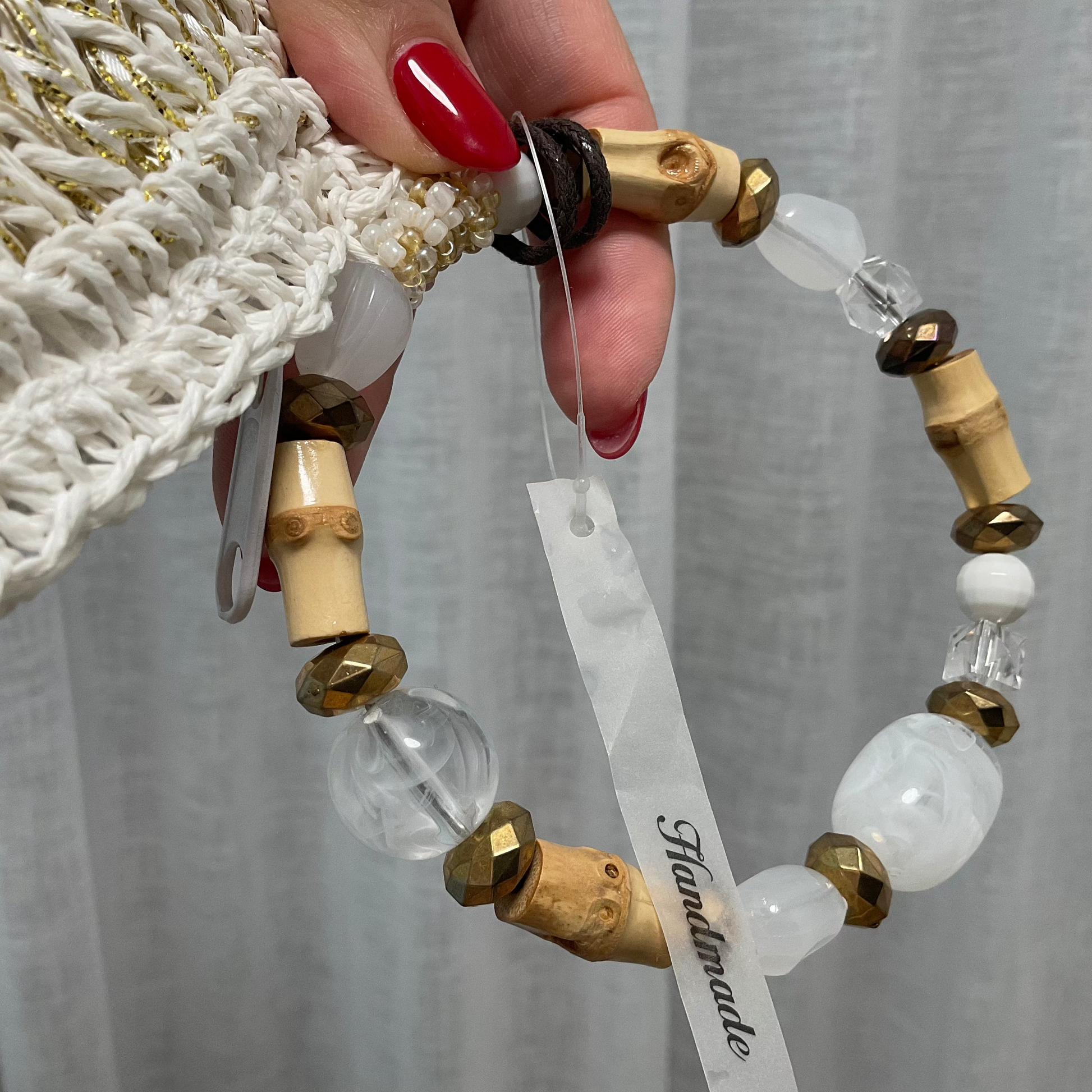 Elevate your style with this exquisitely handcrafted crochet handbag, available in elegant white and soft salmon. Designed with a distinctive bead ring handle, it offers a refined touch that complements both casual and formal looks. Lightweight yet durable, this sophisticated accessory seamlessly combines artistry and function, perfect for those who appreciate timeless elegance.