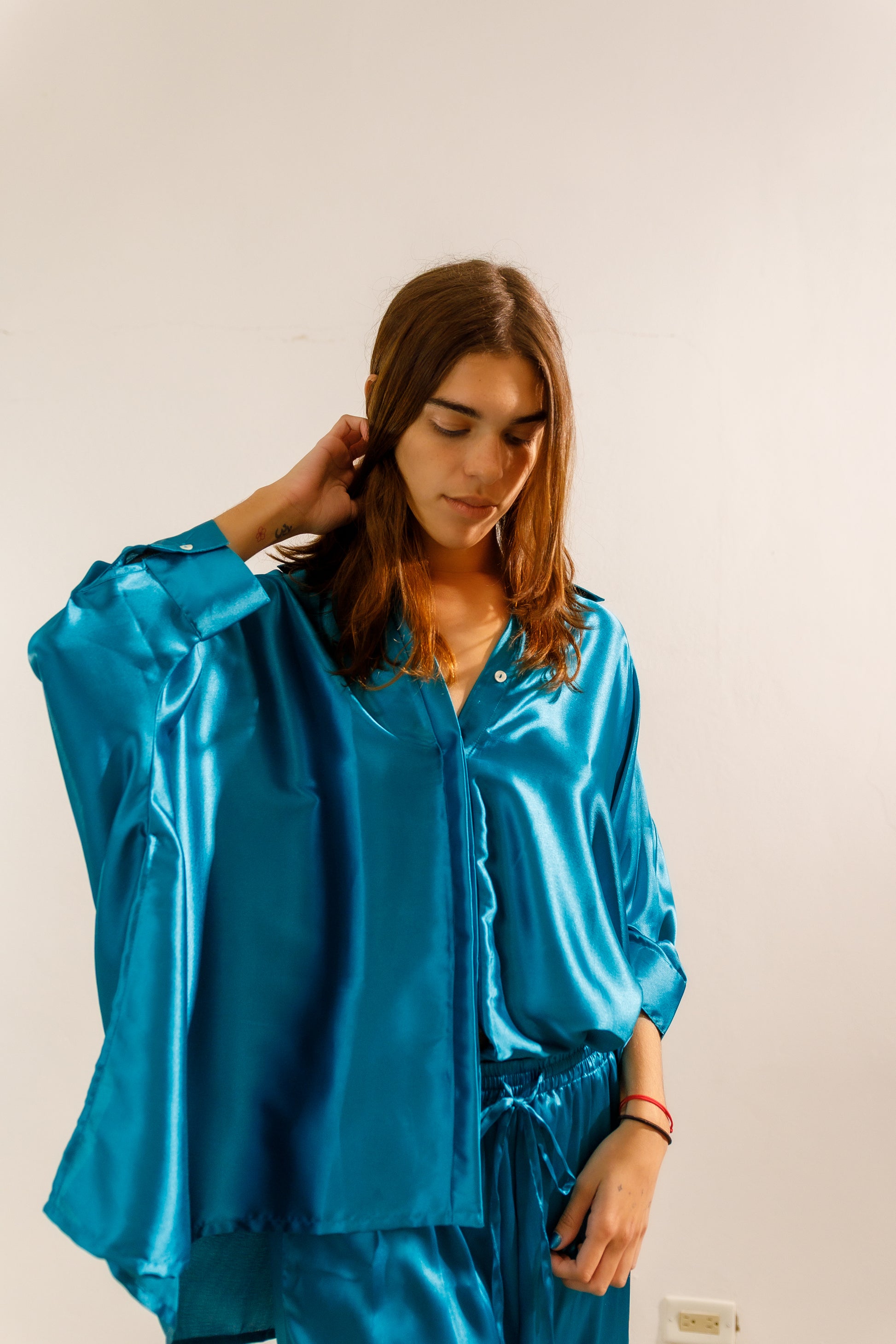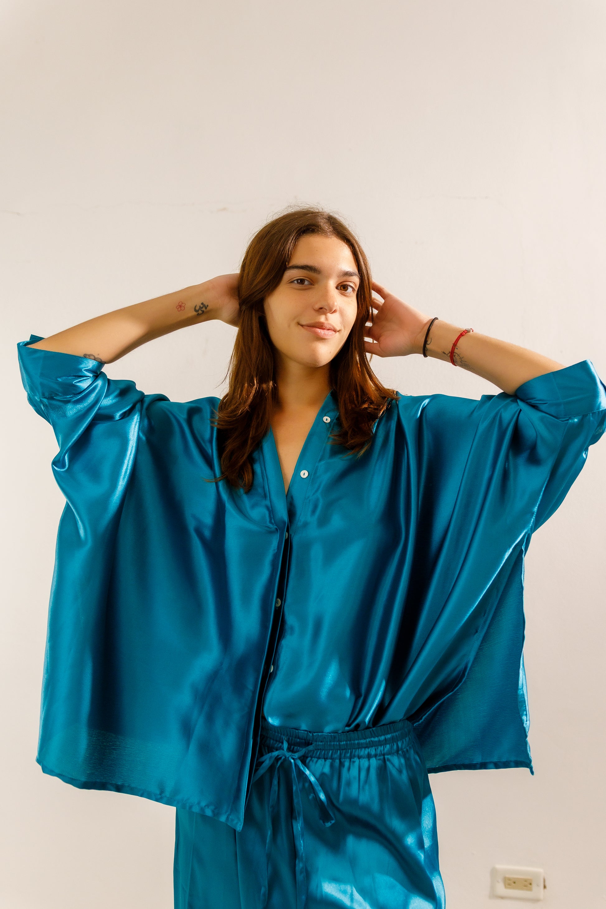 Elevate your wardrobe with this sophisticated Long Sleeve Satin Shirt and Pants Set, offered in elegant teal and champagne hues. Crafted from smooth, luxurious satin, this set provides a sleek, polished look perfect for both professional settings and stylish evening outings. The breathable fabric ensures comfort while maintaining a refined silhouette, making it an excellent choice for those who appreciate both style and ease. Versatile and timeless, this set seamlessly transitions from day to night for a truly expert-level ensemble.