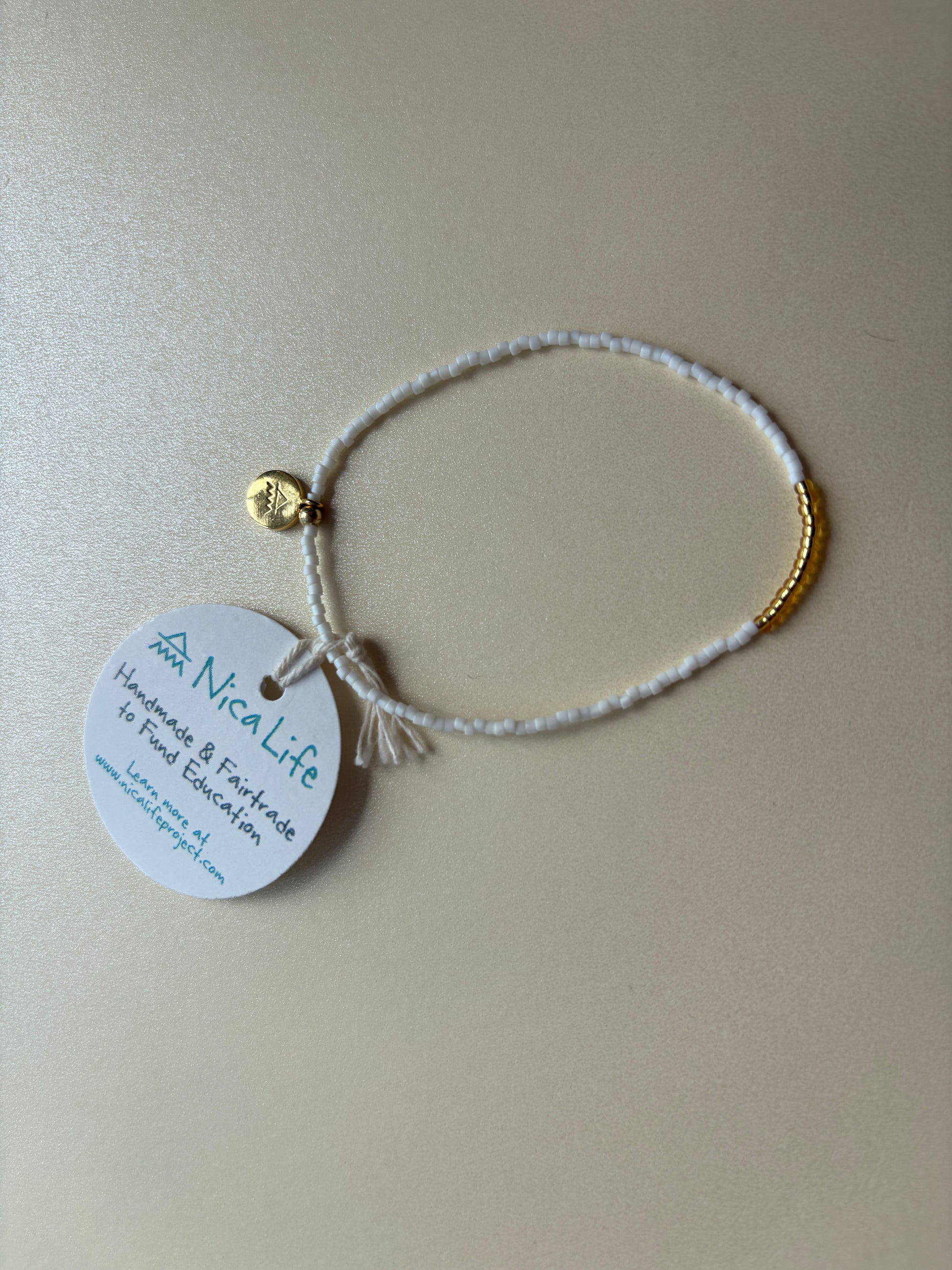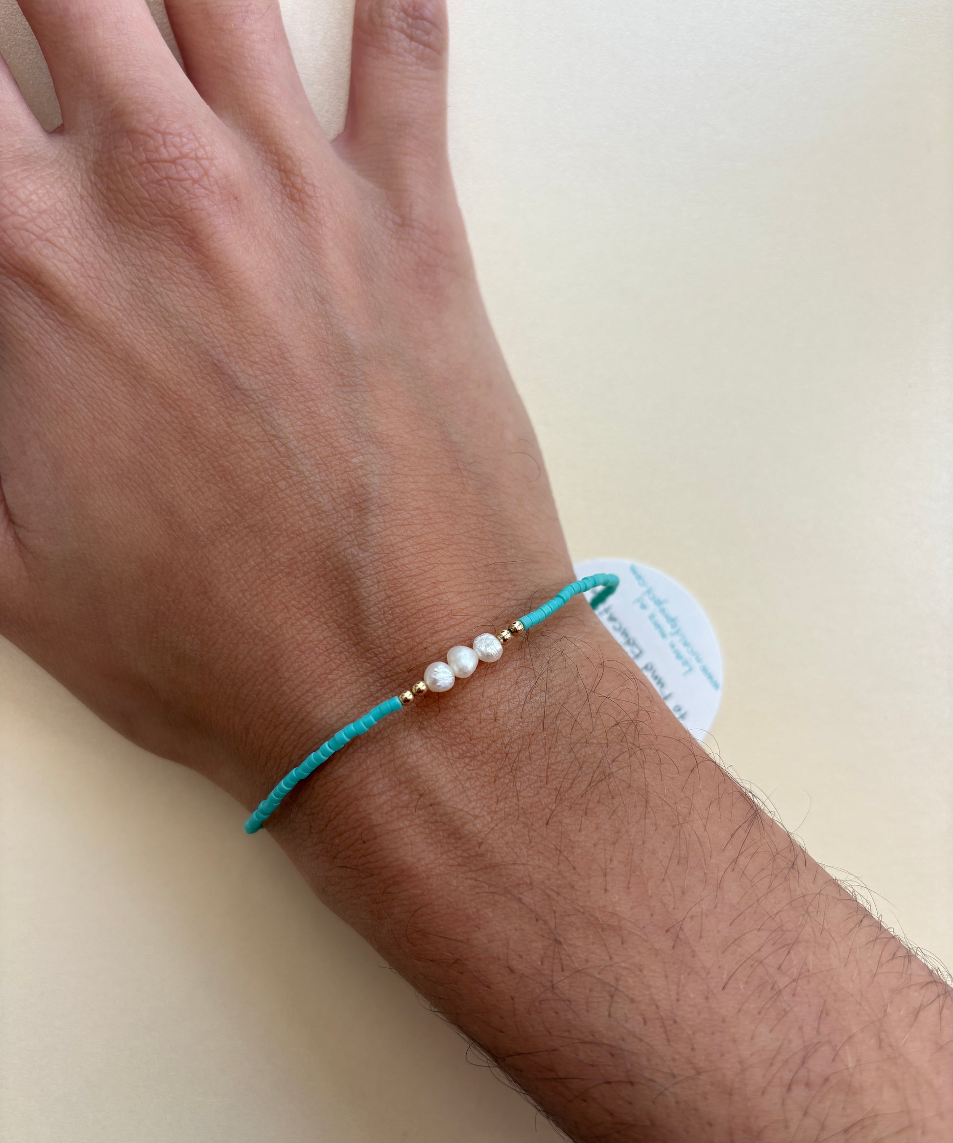 Elevate your wrist with the Paola Inspiración Bracelets, a refined accessory that seamlessly transitions from day to evening. Choose between two elegant colorways: serene aqua paired with lustrous gold accents, or crisp white complemented by warm gold beads. Each bracelet combines timeless sophistication with versatile styling, making it the perfect addition to any jewelry collection. Crafted for those who appreciate understated luxury and meaningful design.