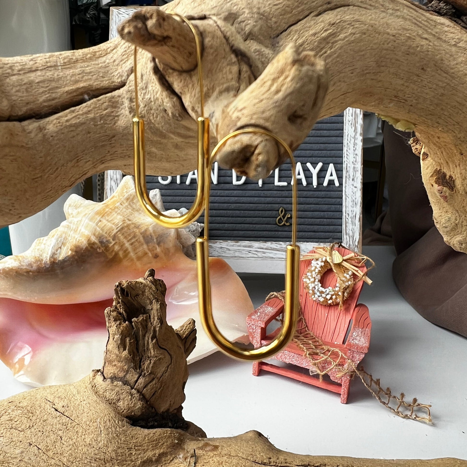 Half dainty and half statement these paperclip earrings are going to be your new favorite accessory, that is speaking from personal experience! They are just the right touch of elegant with your own personal flare, accentuating the fine details. Lightweight and versatile, wear these stunning earrings anywhere, anytime, they will never let you down. Product Details Water and Sweat Resistant Stainless Steel, 18k Gold Plated Measurements: Warranty Included