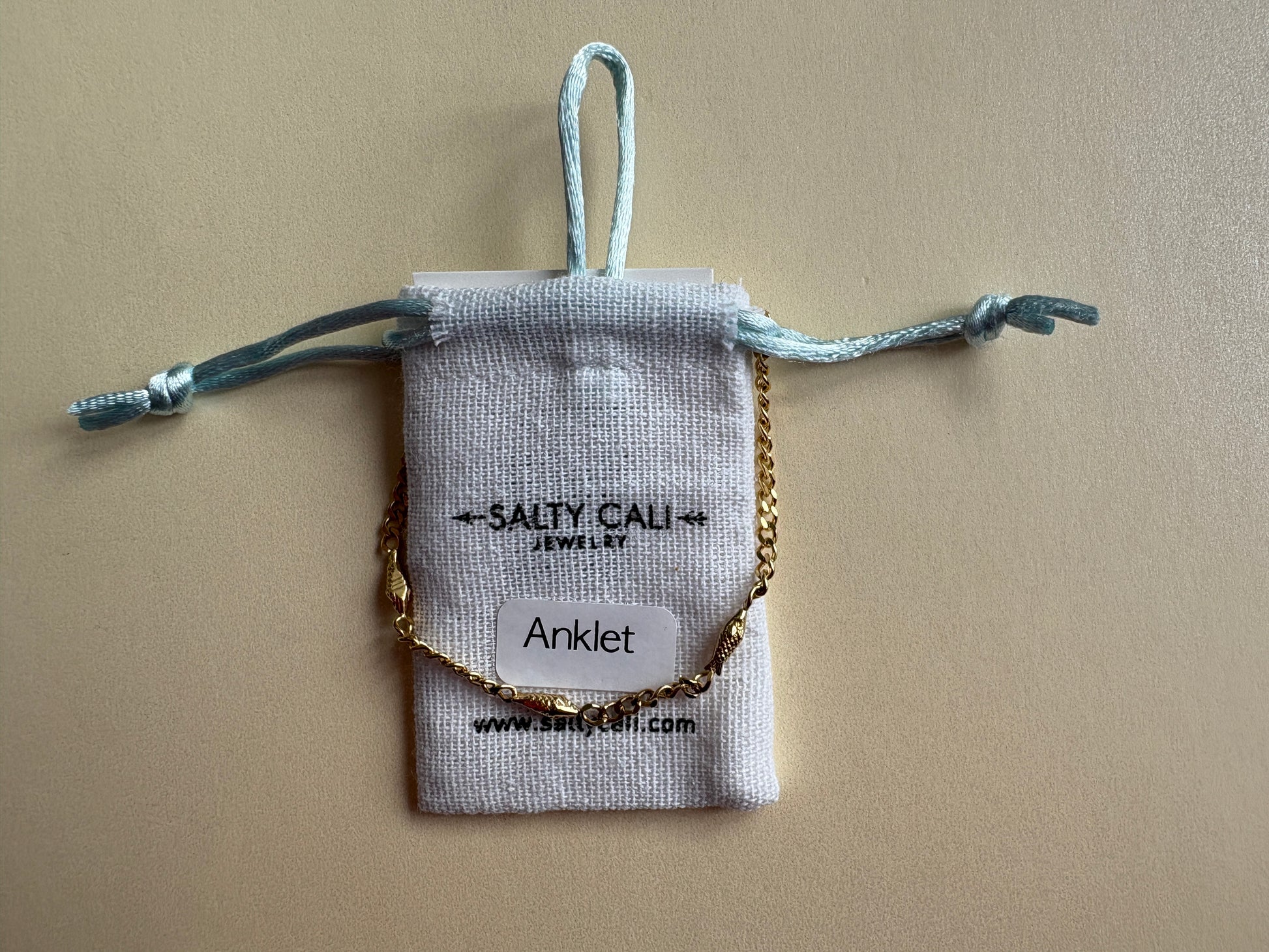 A playful nod to the sea, our Pescaditos Anklet features dainty fish charms swimming along a delicate chain. Each tiny charm adds a subtle shimmer, capturing the carefree magic of sunny days by the water. Wear it solo for a minimal coastal vibe or layer it with your favorite pieces for a look that’s effortlessly beachy. Features: Water and sweat-resistant – perfect for everyday wear Lightweight and comfortable Nickel-free, tarnish-resistant Product Details: Material: Gold-plated stainless steel Size: 8" length plus 2" extender