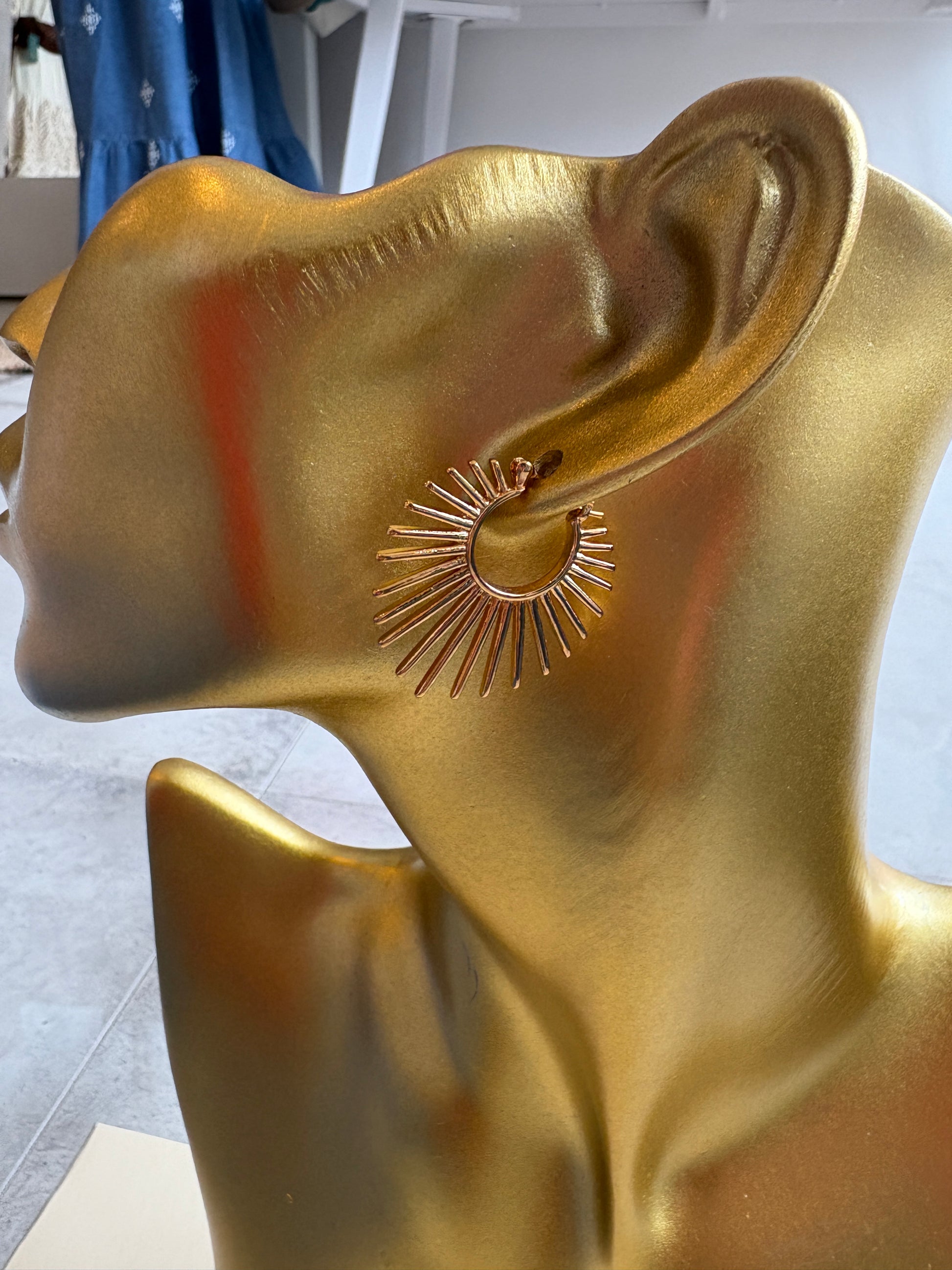 Unique earrings that you can wear everyday? We'll take them! The Sol earrings can dress up any outfit and are light enough to wear every day too. Made of durable stainless steel and plated with precious gold, this piece will stand the test of time and never change color! Product Details Hypoallergenic, gold plated stainless steel Length: 1 1/4"