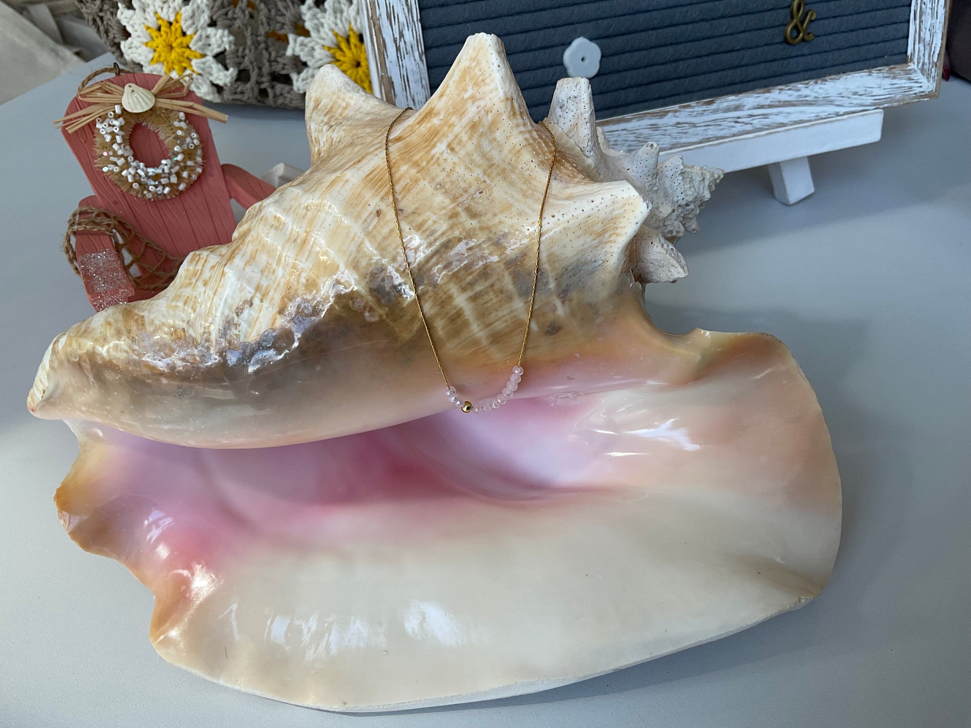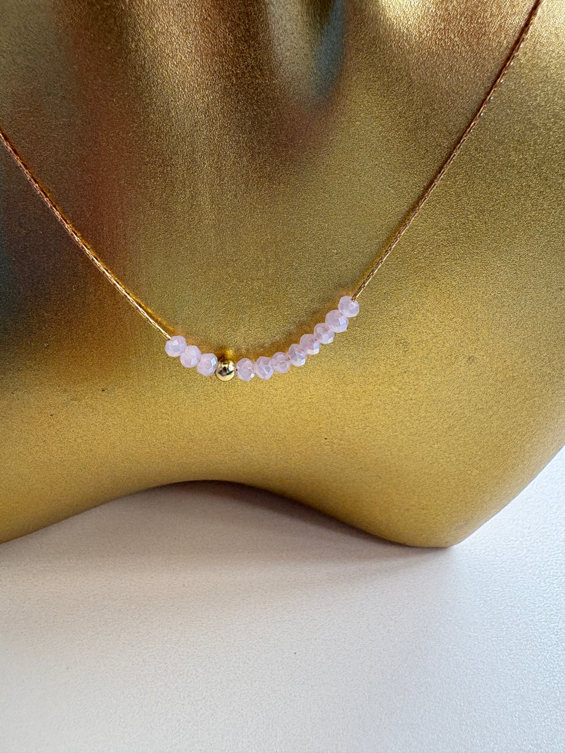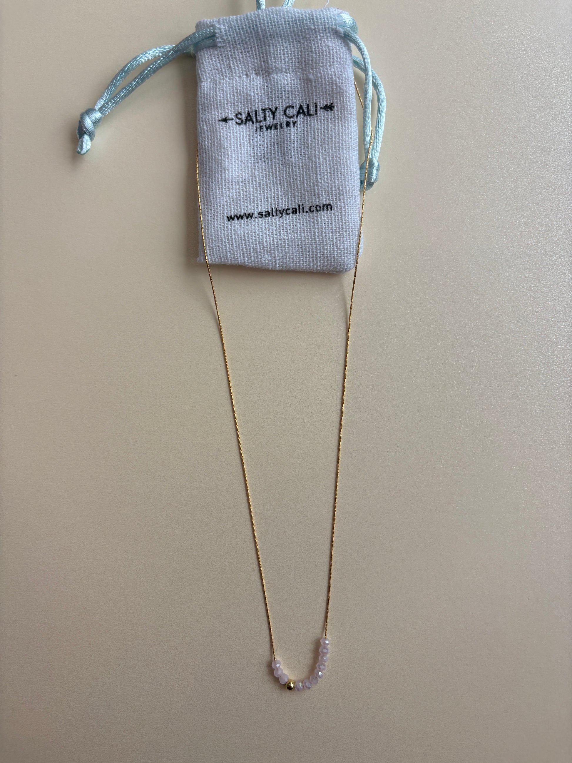 A simple and delicate necklace that goes with any outfit, these hand chosen pink mini-beads are the embodiment of heart eyes. Product Details Available in 925 Sterling Silver or 18K Gold plated Sterling Silver chain Chain length 16" with 2" extender