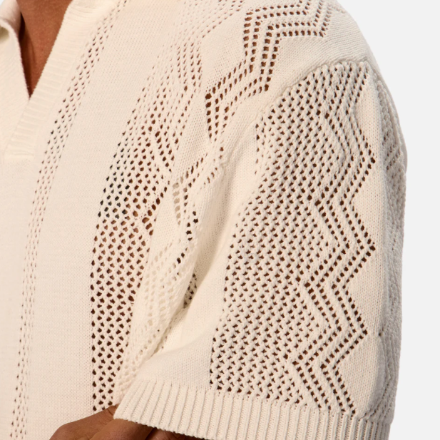 The Fargo Polo features a relaxed fit in heavyweight cotton with a breathable knitted pattern. Enhanced with ribbed collar, sleeve, and hem details, plus subtle leather accents, it combines comfort and style effortlessly. Features: Relaxed Fit Knitted Pattern Breathable Ribbed Collar, Sleeve, and Hem Leather Detailing Heavyweight Fabrication: 100% Cotton